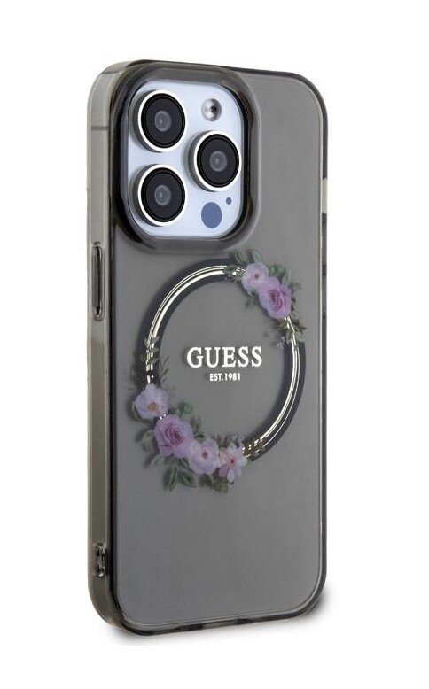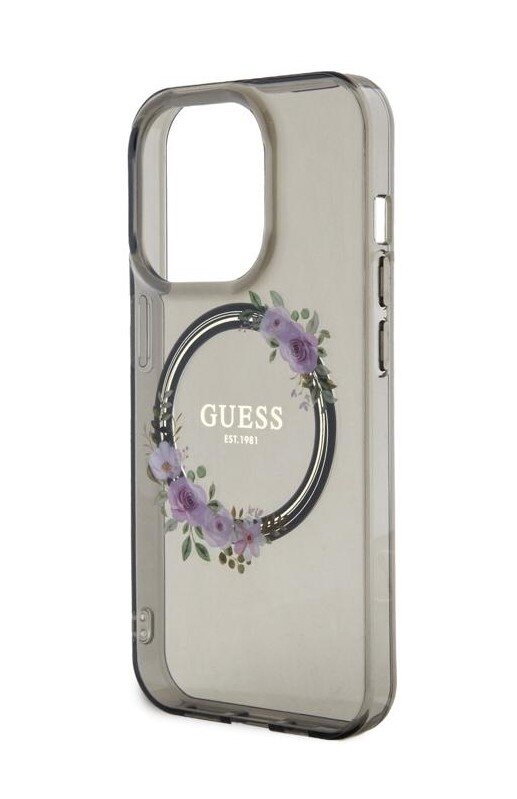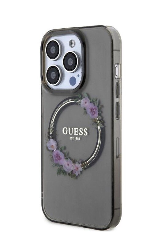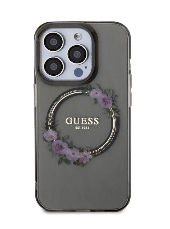GuessPC/TPUFlowersRingGlossyLogoMagSafeZadníKrytproiPhone15ProBlack