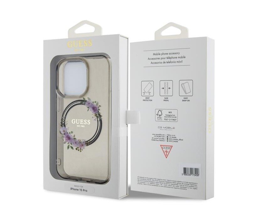 Nechte váš telefon zářit ve své nejlepší podobě s Guess PC/TPU Flowers Ring Glossy Logo MagSafe krytem.
