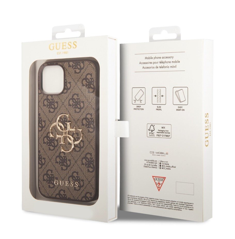 GuessPU4GMetalLogoZadníKrytproiPhone15Hnědý