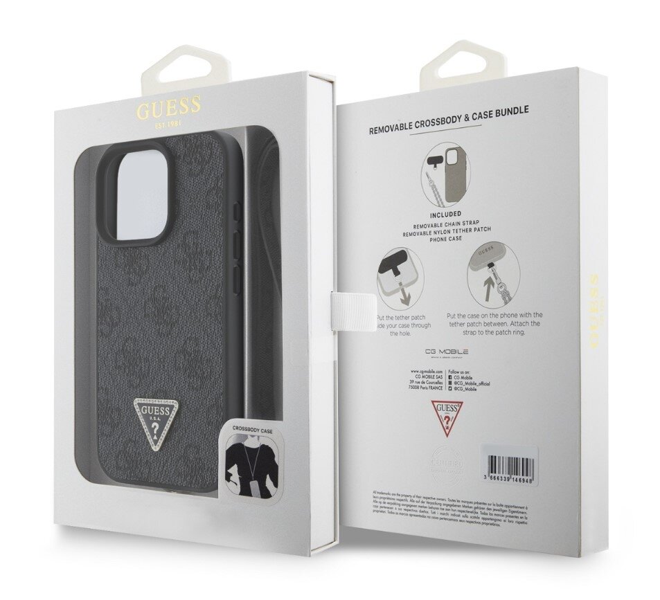 GuessPU4GStrassTriangleMetalLogoZadníKryt+CrossbodyPopruhproiPhone16ProBlack