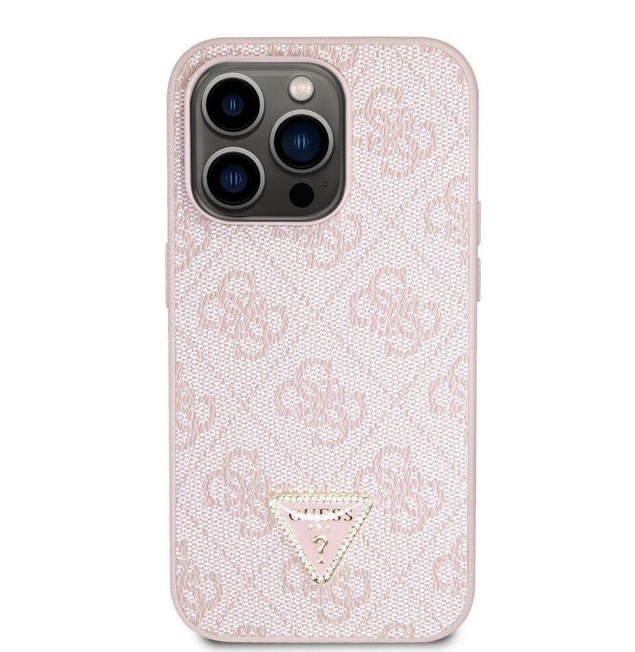 Prémiový ochranný kryt Guess PU 4G Strass Triangle Metal pro iPhone 15 Pro.