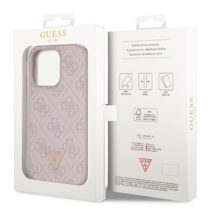 GuessPU4GStrassTriangleMetalLogoZadníKrytproiPhone15ProRůžový