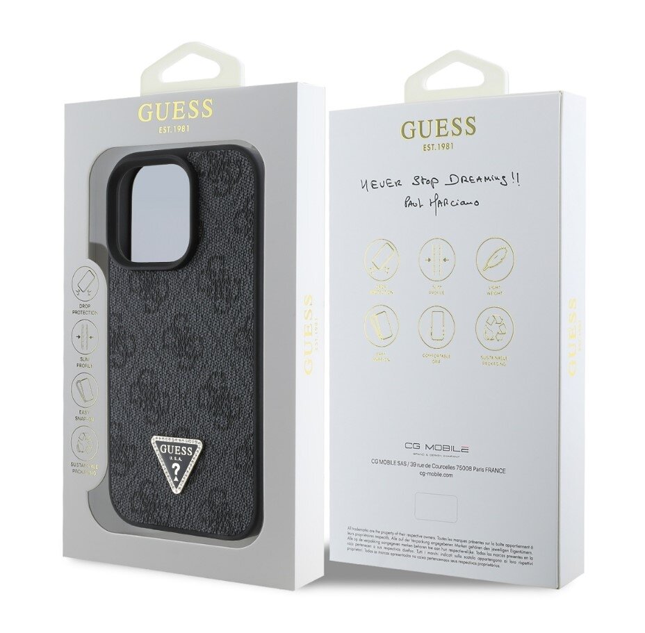 GuessPU4GStrassTriangleMetalLogoZadníKrytproiPhone16ProBlack