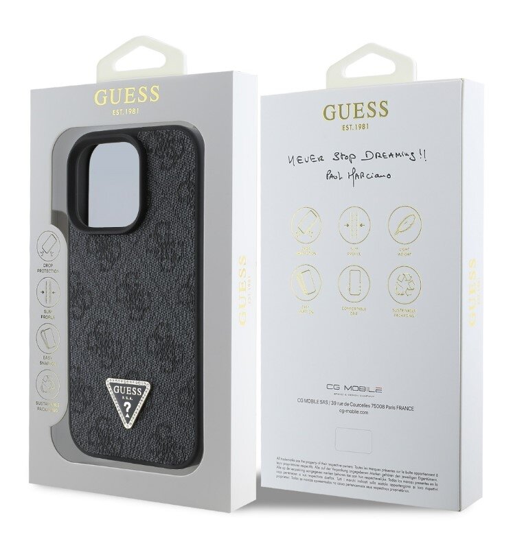 GuessPU4GStrassTriangleMetalLogoZadníKrytproiPhone16ProBlack