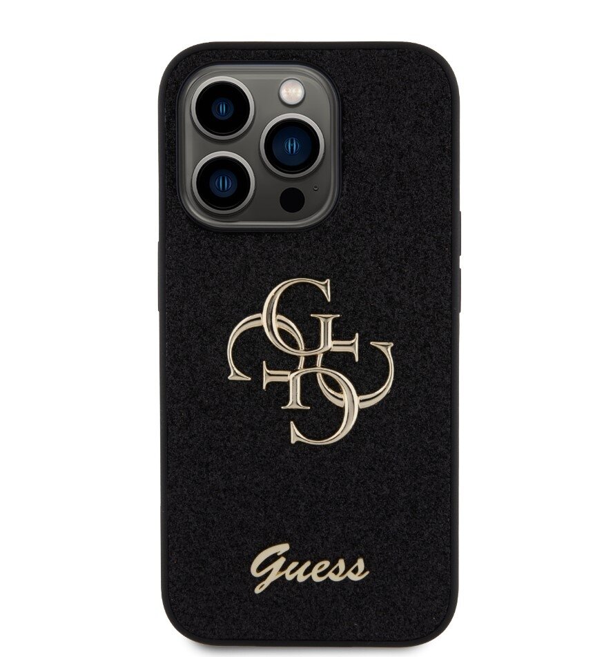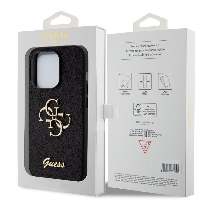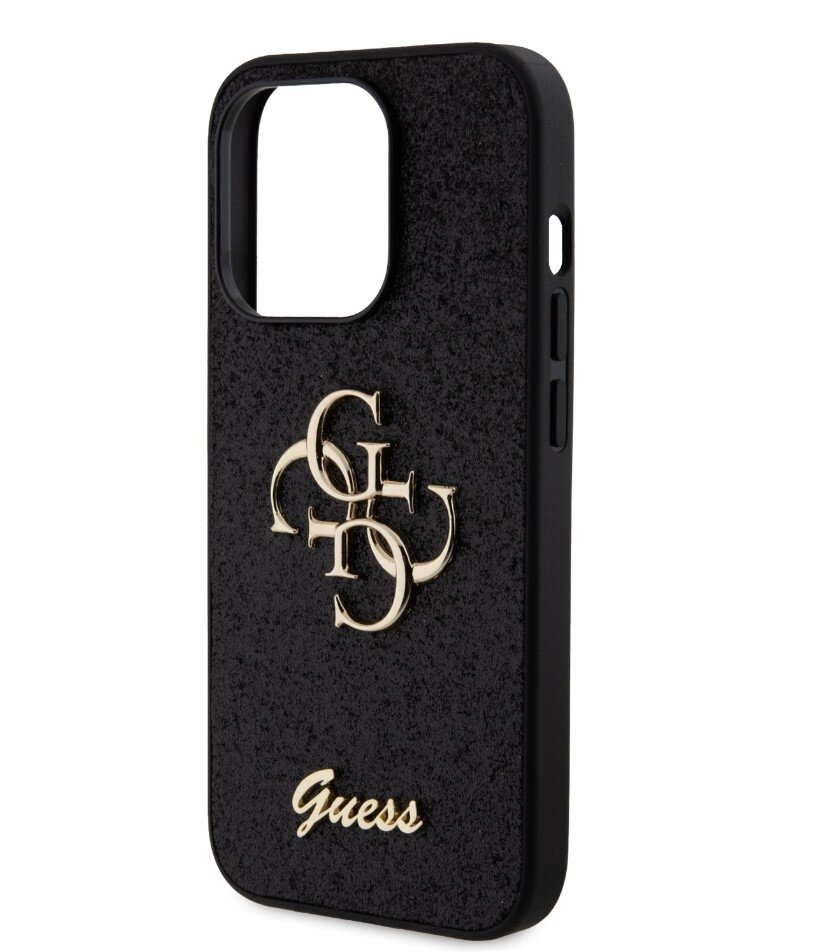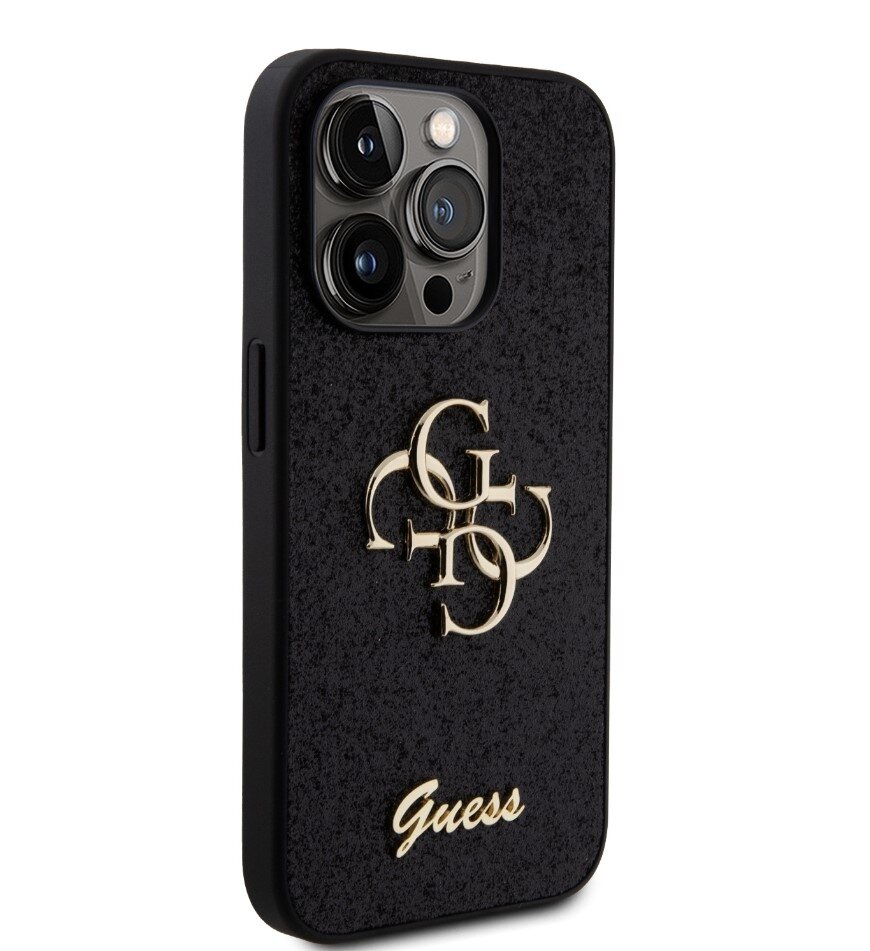 GuessPUFixedGlitter4GMetalLogoZadníKrytproiPhone15ProČerný