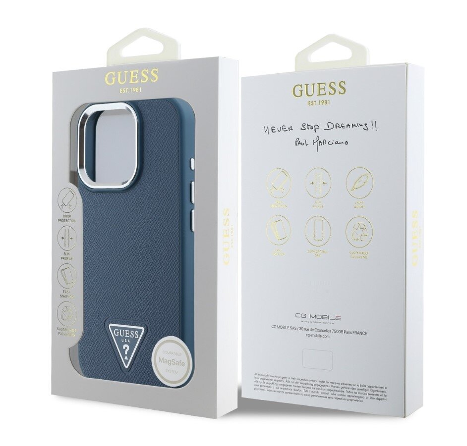 GuessPUGrainedTriangleLogoZadníKrytproiPhone16ProBlue