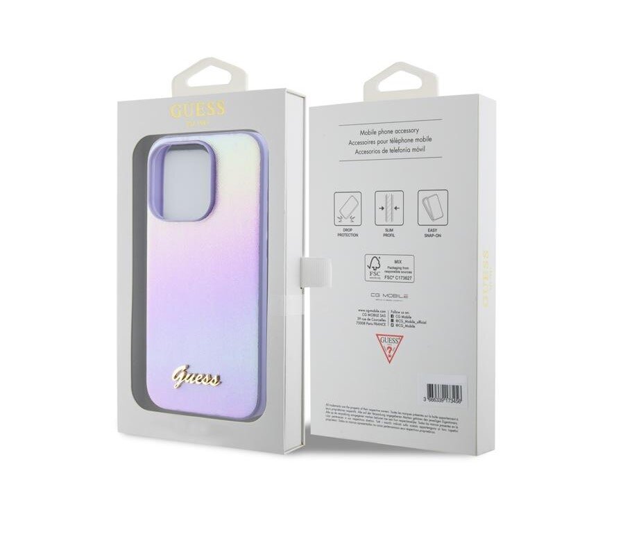 GuessPULeatherIridescentMetalScriptZadníKrytproiPhone15Purple