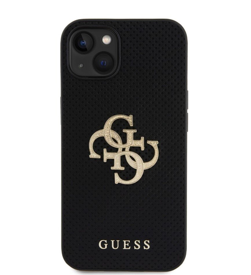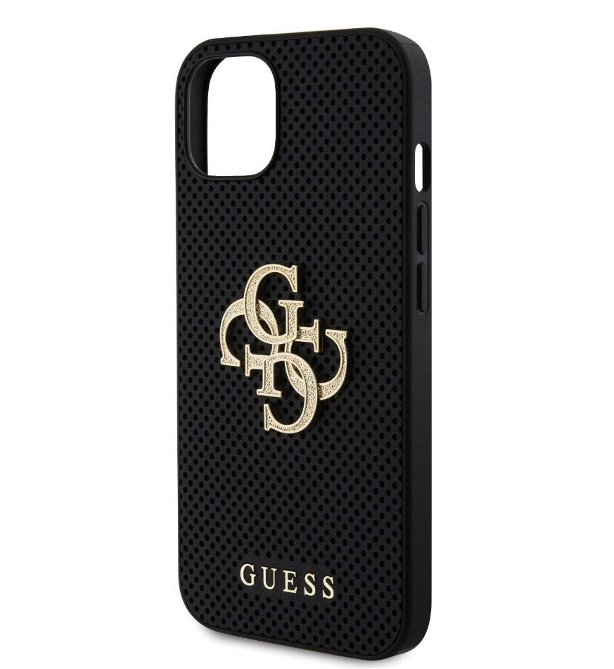 GuessPUPerforated4GGlitterMetalLogoZadníKrytproiPhone15Černý