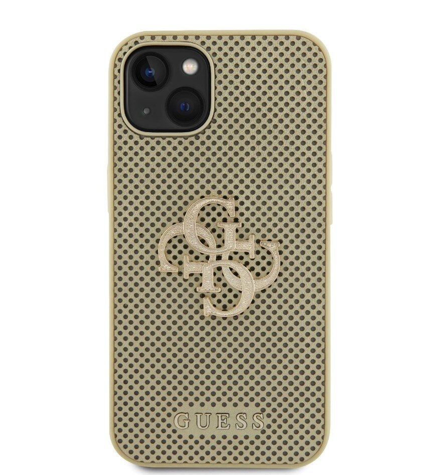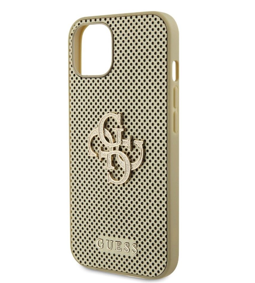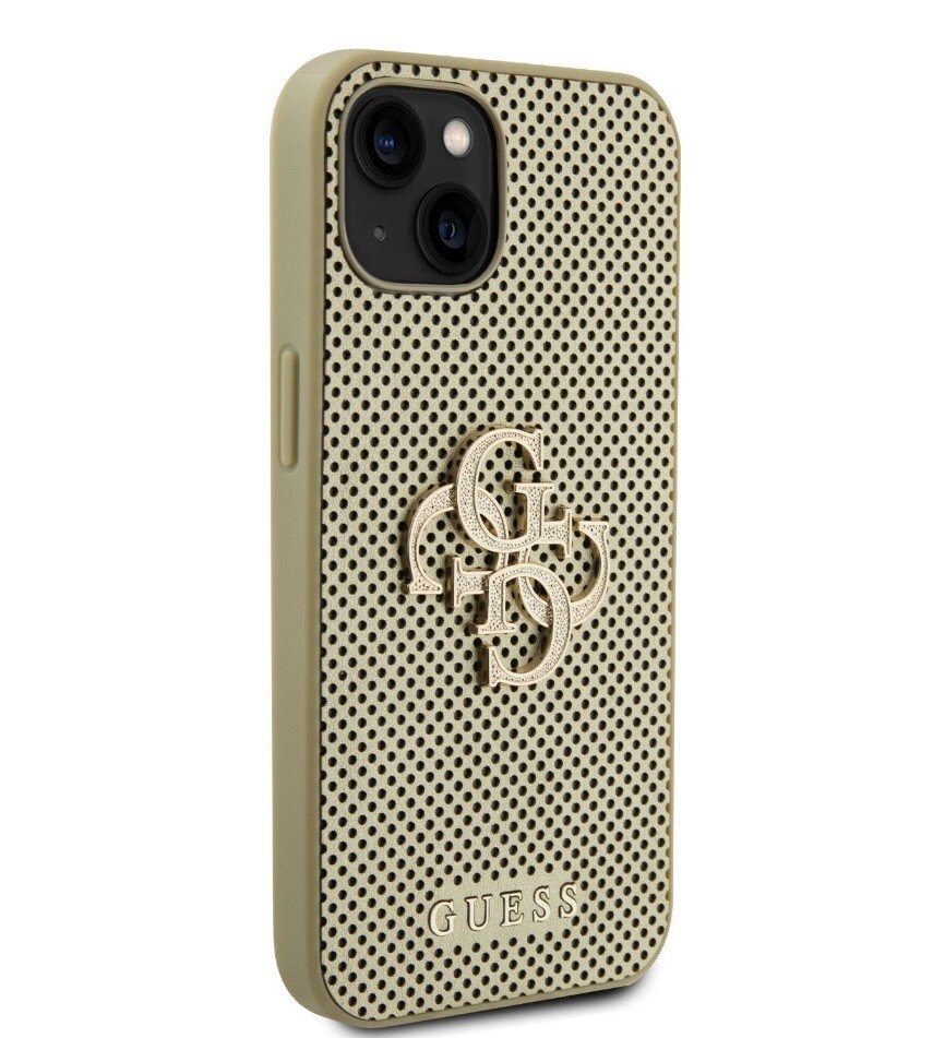 GuessPUPerforated4GGlitterMetalLogoZadníKrytproiPhone15Zlatý
