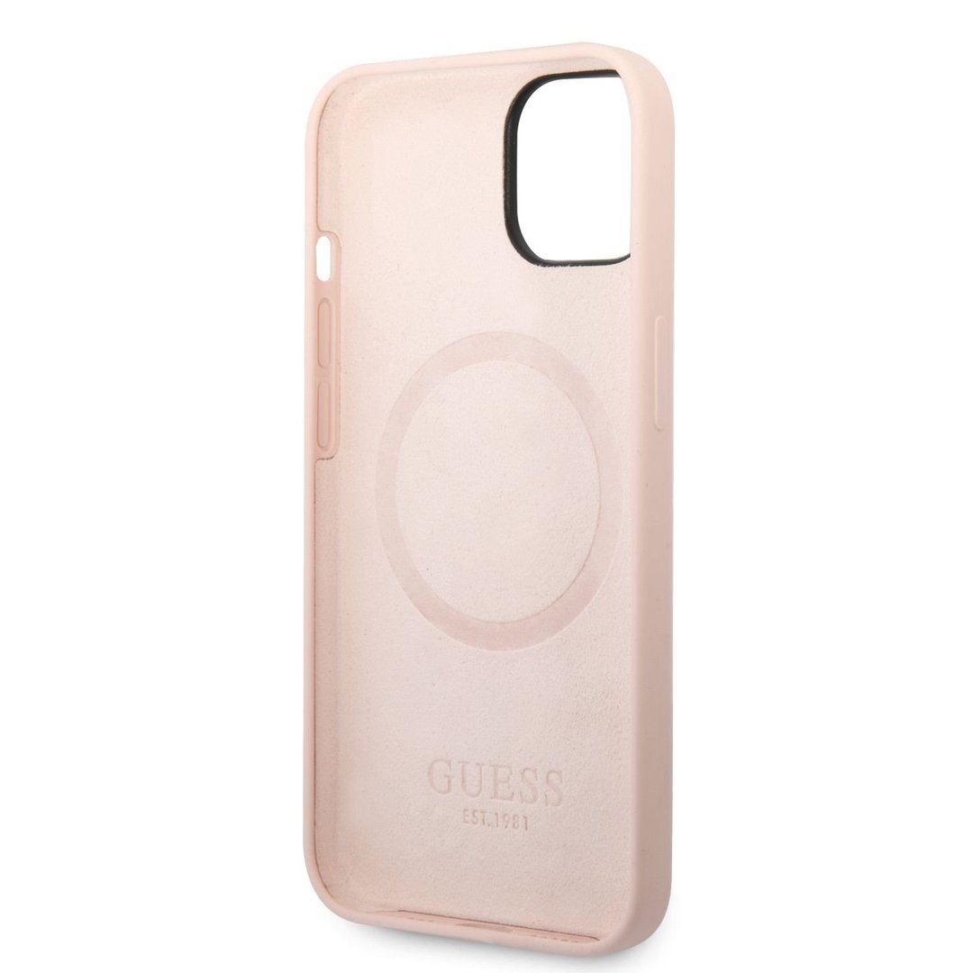 GuessSiliconeMetalLogoMagSafeZadníKrytproiPhone14Pink
