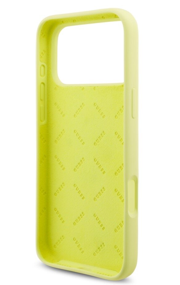 GuesszadníkrytproiPhone17ProMax,LiquidSilicone4GMetalLogo-žlutá