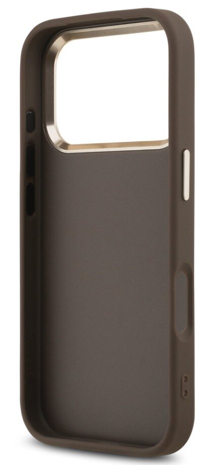 GuesszadníkrytproiPhone17ProMax,PUKůže4GMetalLogoGoldFrame-hnědá