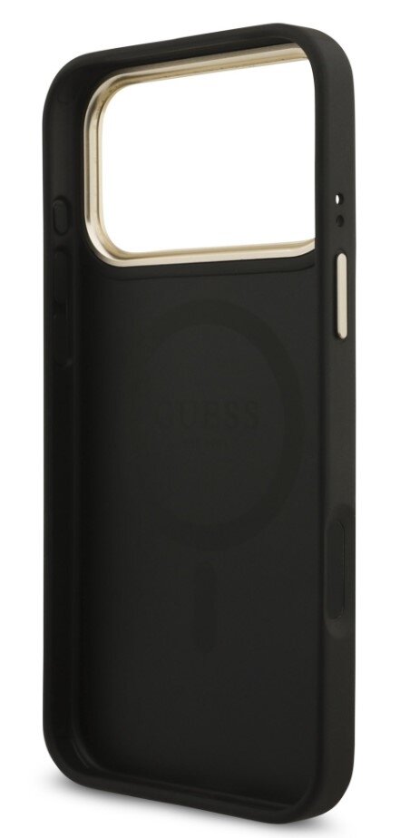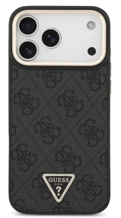 GuesszadníkrytproiPhone17ProMax,PUKůže4GTriangleLogoGoldFrameMagSafe-černá