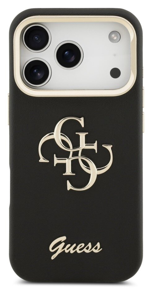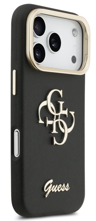 GuesszadníkrytproiPhone17Pro,PUGrained4GLogoStandCameraFrame-černá