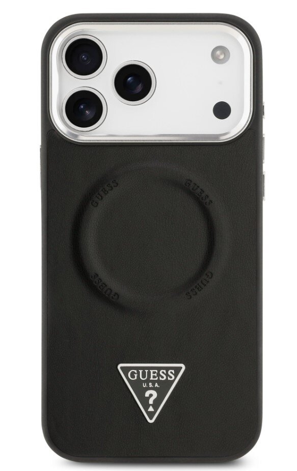 Guess zadní kryt pro iPhone 17 Pro, PU Kůže Triangle Logo MagSafe - černá