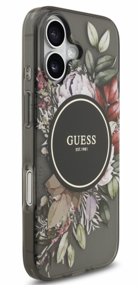 GuesszadníkrytspopruhemnarukuproiPhone17,IMLFlowersMagSafe-černá