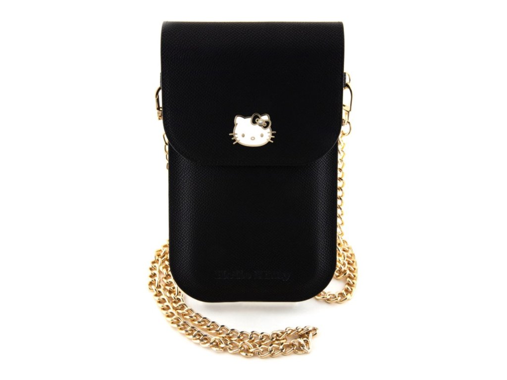 Hello Kitty PU Leather Metal Logo Taška na Telefon – černá