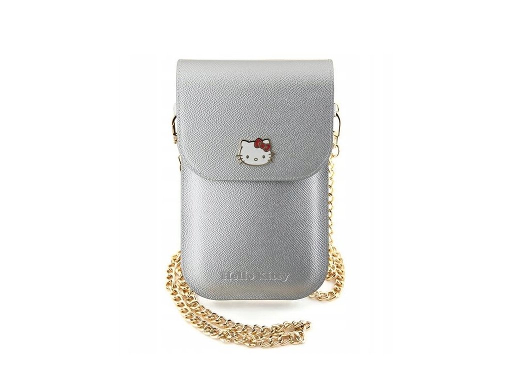 Hello Kitty PU Metal Logo Leather Wallet Phone Bag Silver