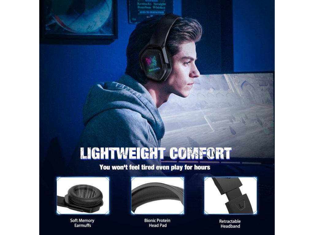 Herní sluchátka Onikuma X4, mikrofon a LED podsvícení, černá