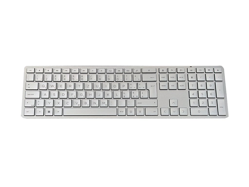 HP 970 Programovatelná bezdrátová klávesnice představuje prémiové řešení pro uživatele, kteří chtějí maximální komfort, flexibilitu a personalizaci při každodenní práci. Kombinuje elegantní stříbrný design, plnohodnotné rozložení kláves s numerickým blokem a moderní technologie, které posouvají zážitek z psaní na vyšší úroveň.