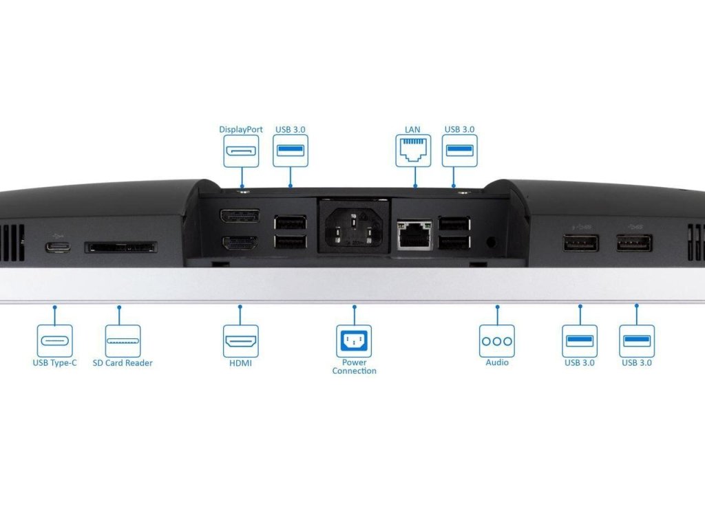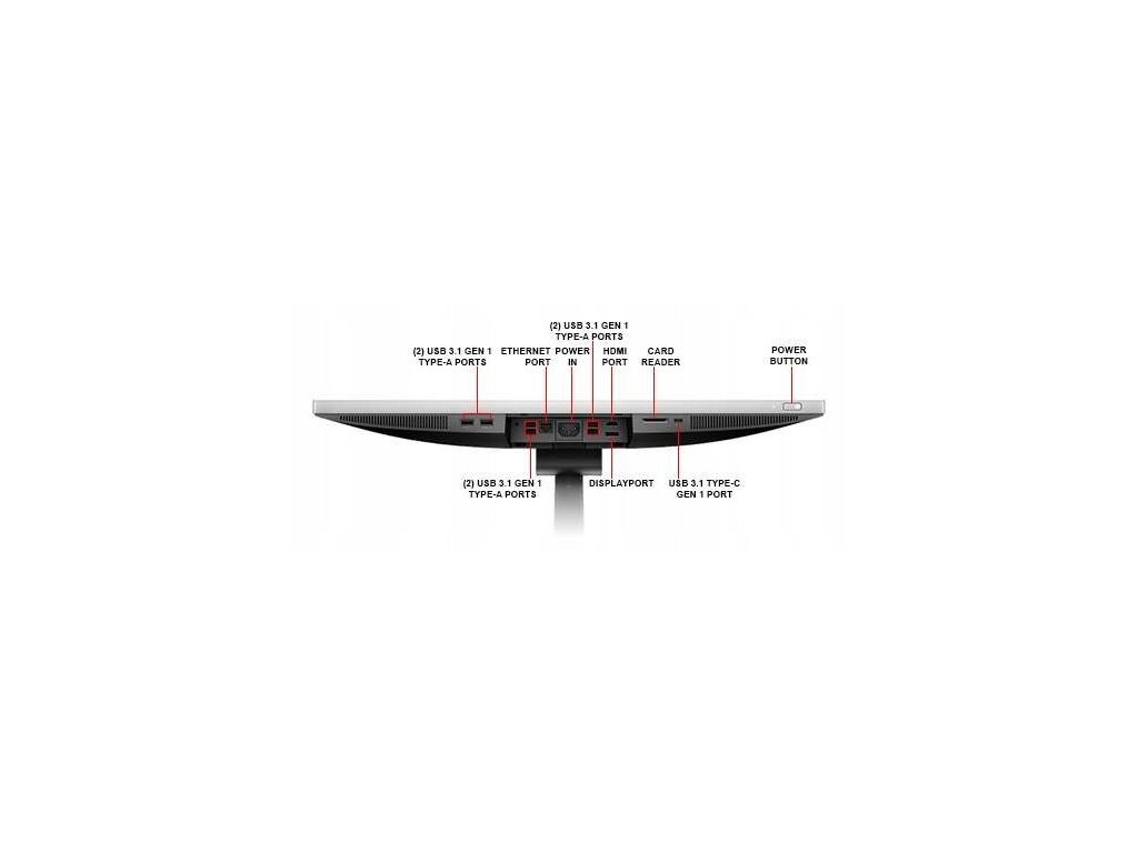 • LAN, WiFi ac, Bluetooth, 1x USB-C, 6x USB 3.1, HDMI, DisplayPort, 2x FullHD webkamera + 480p IR kamera pro Windows Hello, čtečka SD karet, bezdrátová klávesnice a myš, výškově nastavitelný podstavec, čtečka otisků prstů