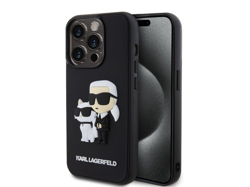 Karl Lagerfeld 3D Rubber Karl and Choupette Zadní Kryt pro iPhone 14 Pro Black