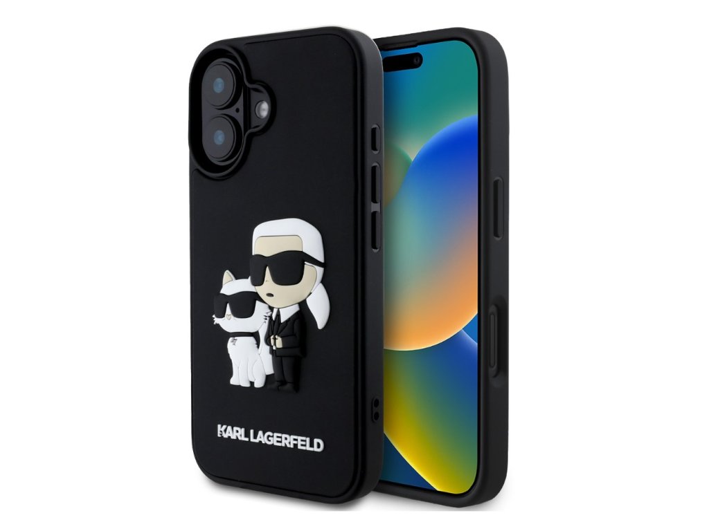 Karl Lagerfeld 3D Rubber Karl and Choupette Zadní Kryt pro iPhone 16 Black