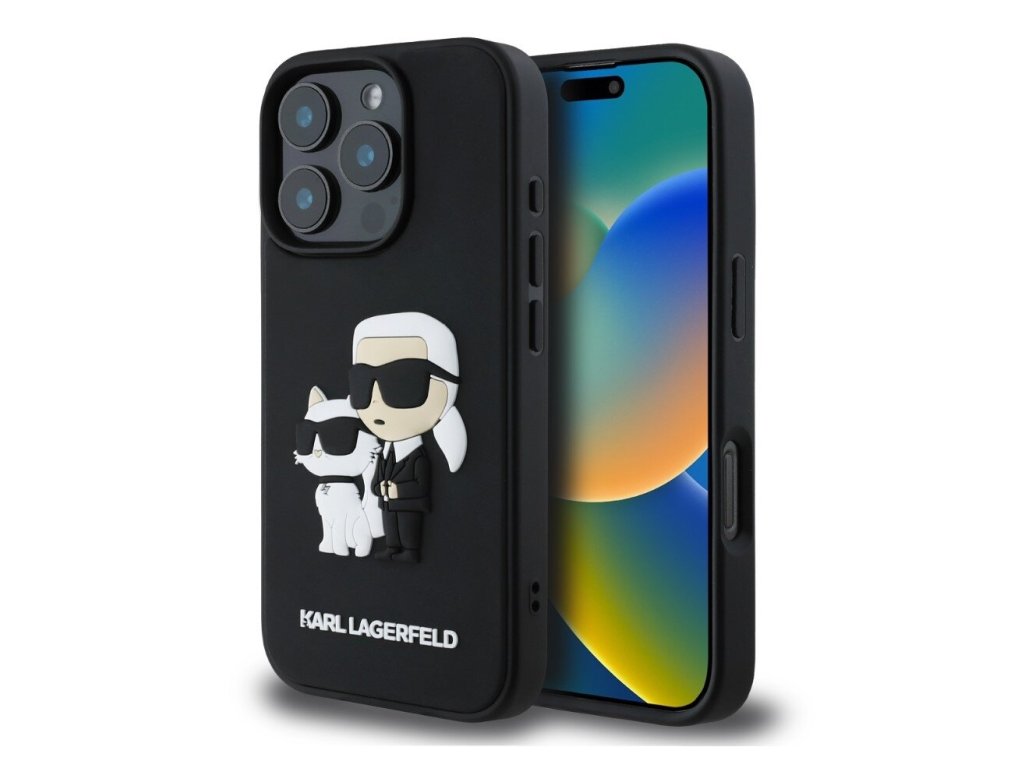 Karl Lagerfeld 3D Rubber Karl and Choupette Zadní Kryt pro iPhone 16 Pro Black