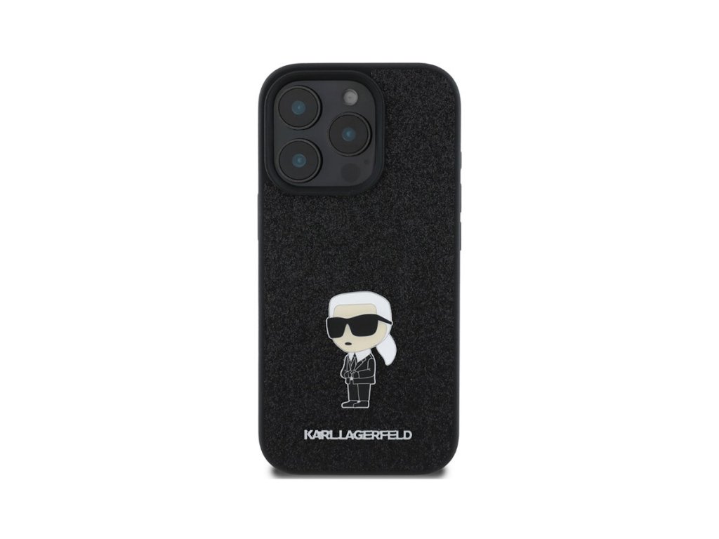 Karl Lagerfeld Fixed Glitter Metal Ikonik Zadní Kryt pro iPhone 16 Pro – černá