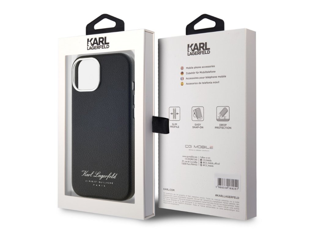 Karl Lagerfeld Grained PU Hotel RSG Zadní Kryt pro iPhone 15 Black