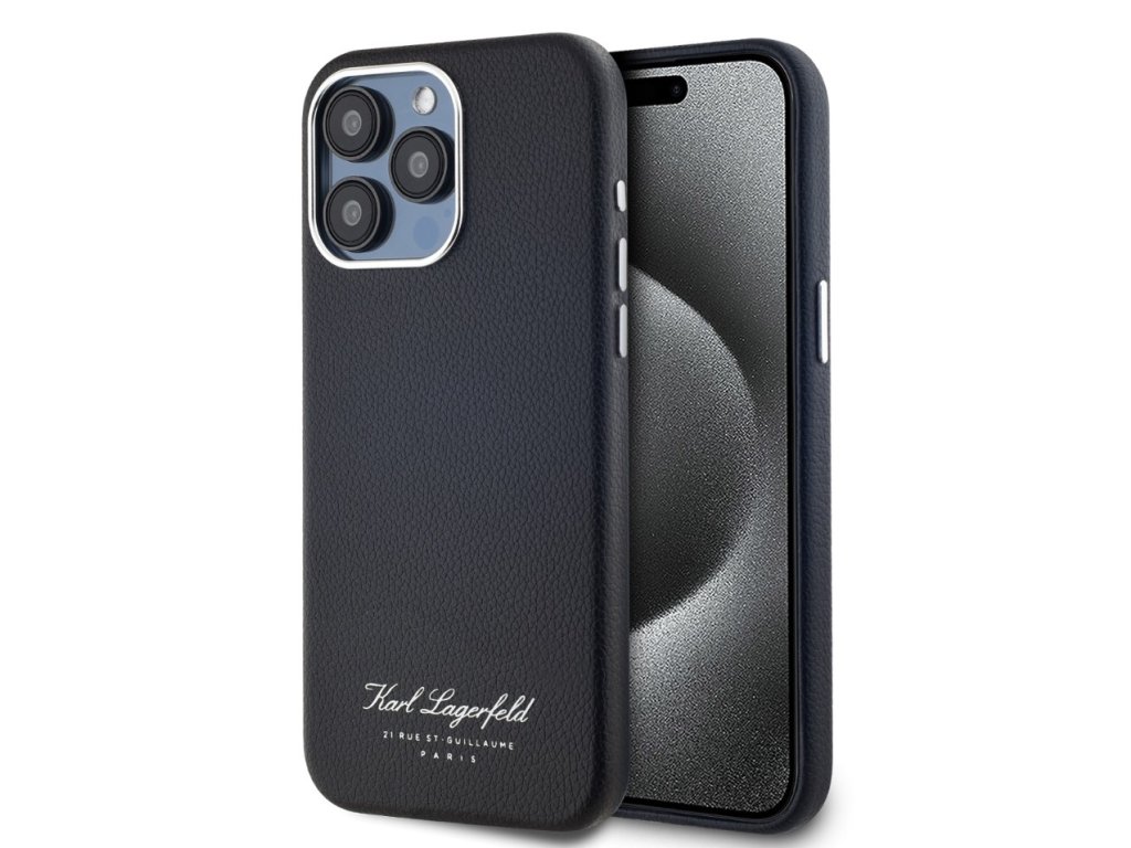 Karl Lagerfeld Grained PU Hotel RSG Zadní Kryt pro iPhone 15 Pro Black
