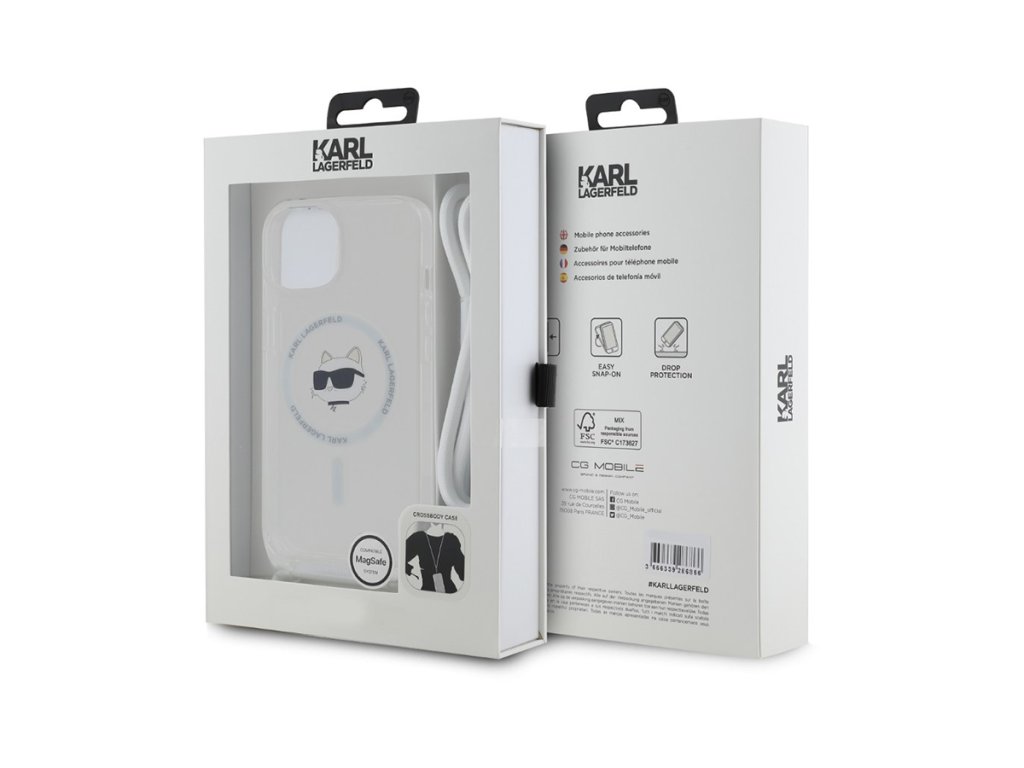 Karl Lagerfeld IML Crossbody Choupette Head MagSafe Zadní Kryt pro iPhone 15 Průhledná