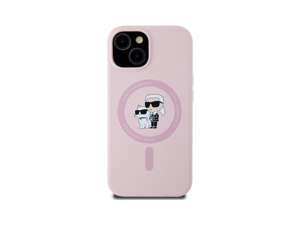 Karl Lagerfeld Liquid Silicone Karl and Choupette MagSafe Zadní Kryt pro iPhone 15 Růžová