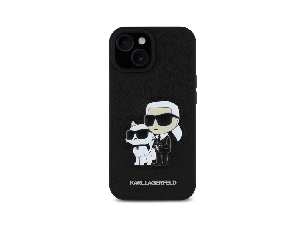 Karl Lagerfeld PU Saffiano Karl and Choupette Zadní Kryt pro iPhone 15 Černá
