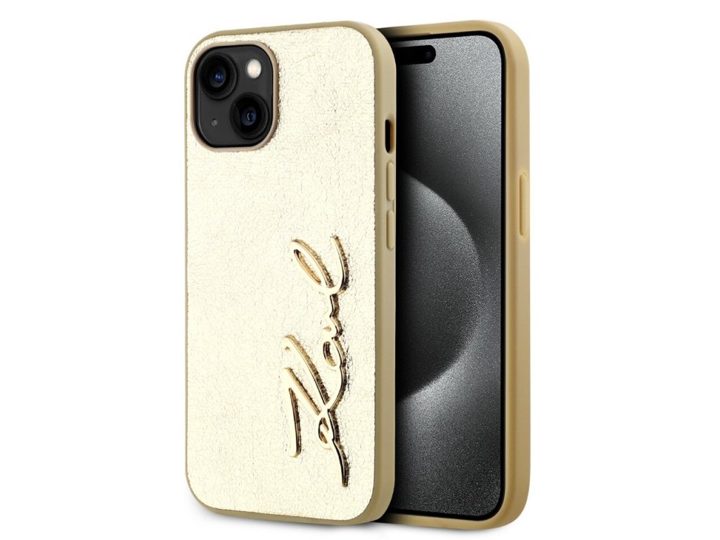 Karl Lagerfeld Wrinkled PU Signature Logo Zadní Kryt pro iPhone 15 Gold