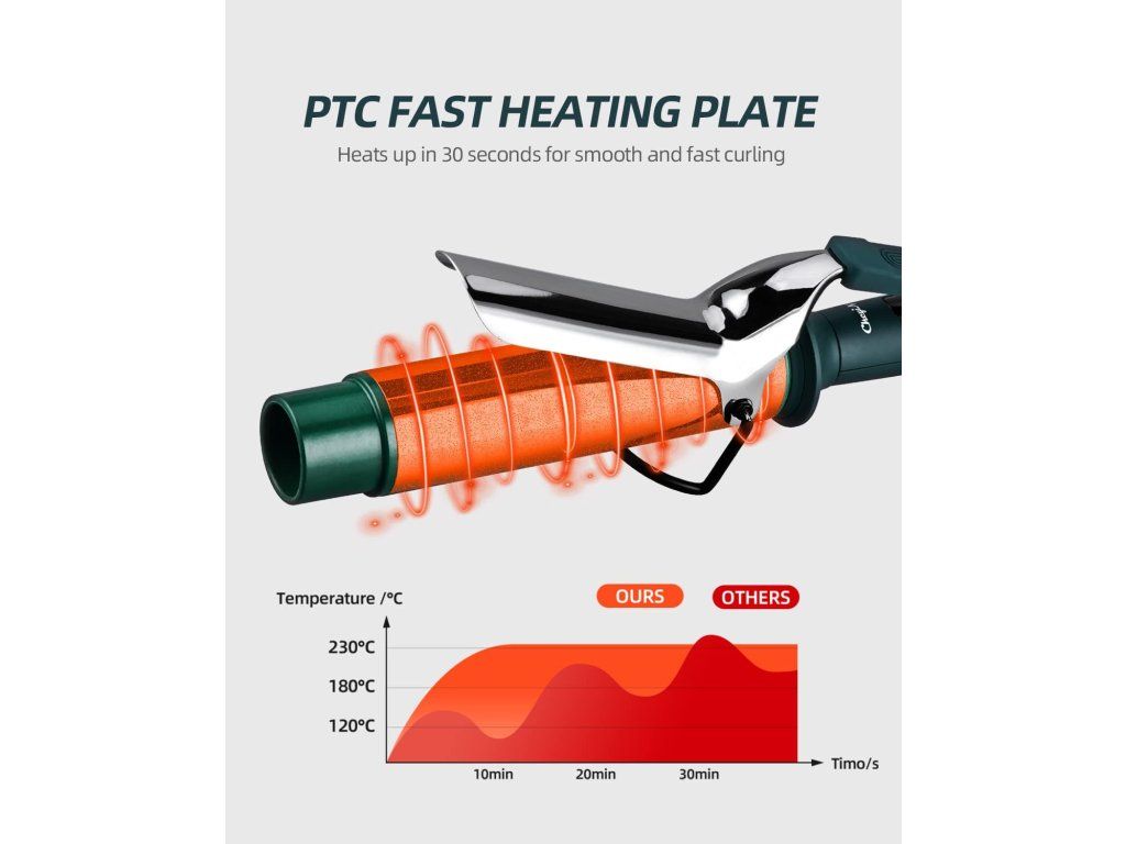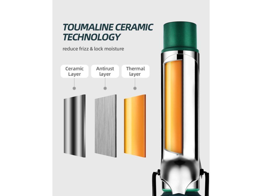 Ceramická turmalínová vrstva zajišťuje rovnoměrné rozložení tepla a chrání vlasy před přehřátím. Výsledkem jsou hebké, zdravě vypadající vlny bez krepatění a statické elektřiny.