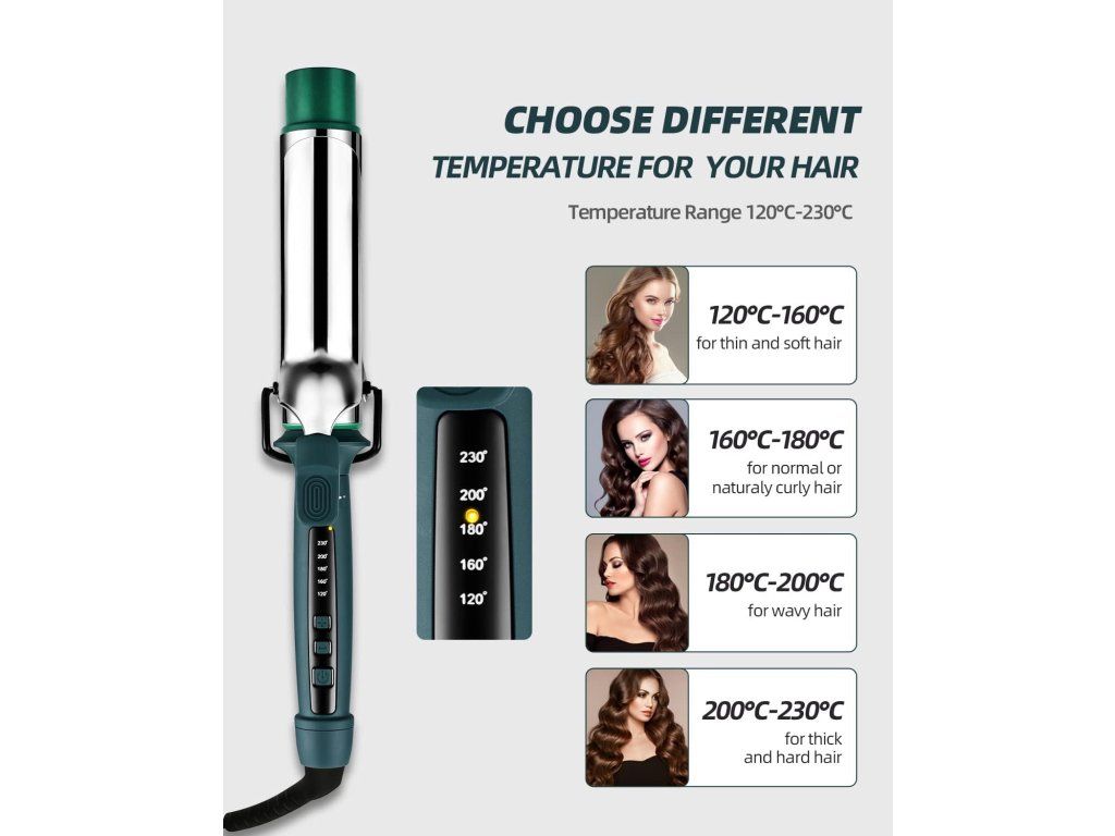 Vytvořte přirozené vlny bez námahy s keramickou turmalínovou kulmou, která nabízí rychlé nahřátí, ochranu vlasů a elegantní design. Ideální pro tvorbu velkých kudrlin, plážových vln nebo jemně rozvolněných účesů – vše s minimálním poškozením vlasů a maximální výdrží.