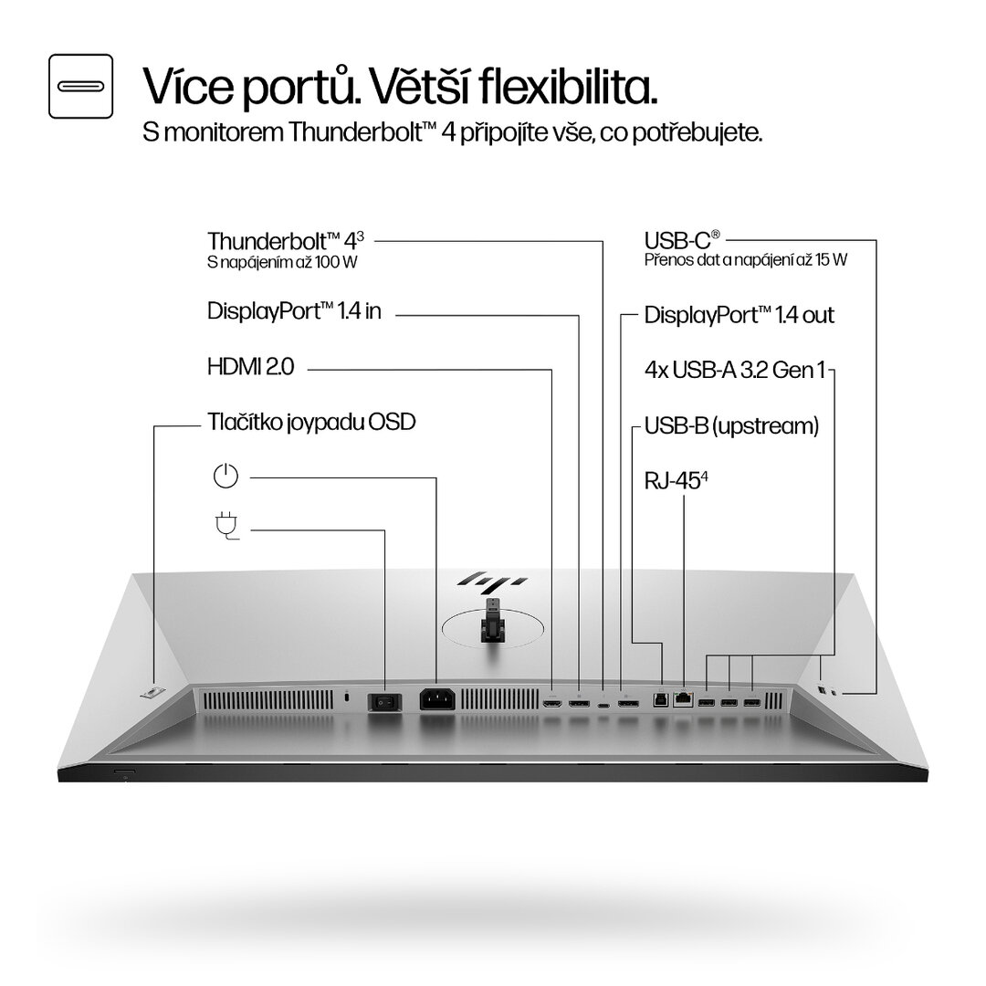 Monitor podporuje více způsobů připojení, což zajišťuje kompatibilitu s různými zařízeními. Jeho design zároveň minimalizuje nepořádek na stole a podporuje čisté a profesionální pracovní prostředí.