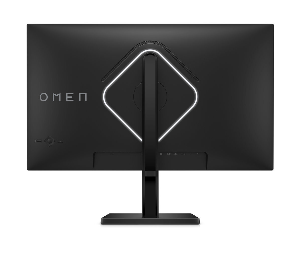 HP OMEN 27k UHD má elegantní, stabilní konstrukci s tenkými rámečky. Monitor je navržen tak, aby nezabíral zbytečně mnoho prostoru, zatímco nabídne komfortní pozorovací úhly.