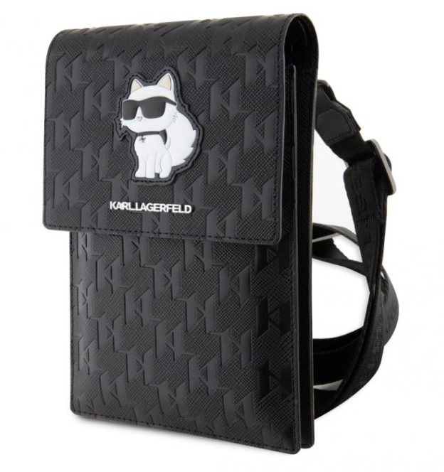 Karl Lagerfeld Saffiano Monogram Wallet Phone Bag je perfektní taška přes rameno, nejen pro Váš telefon, peněženku, doklady, klíče, navíc s atraktivním Choupette NFT logem. Prostě kapsa přes rameno na cokoliv budete potřebovat, ve stylovém designu, který perfektně doplní Váš outfit.