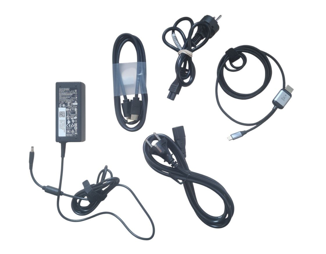 Součástí balení je VESA držák, USB‑C → HDMI kabel pro přenos obrazu ve 4K@60 Hz, HDMI kabel a napájecí adaptér s kabelem typu „mickey mouse“. Monitor je zabalen v originálním balení, LCD byl pouze předváděcí kus – nepoužitý, pouze prošel důkladným testováním u techniků.