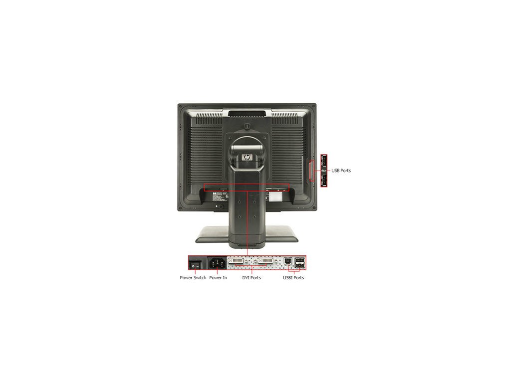 Monitor má dva obrazové vstupy a oba jsou v provedeni DVI-I, což znamená, že obsahují jak analogový, tak digitální piny pro připojení plnohodnotného DVI-I kabelu. Není tedy problém připojit počítač s analogovým výstupem. Pro přívod elektrické energie je zde klasický třípinový konektor na 220V/120V. Monitor má tedy zabudovaný zdroj, a tak vám nebude překážet krabička u nohou. Někteří uživatelé upřednostňují externí zdroje z důvodu, aby byl monitor co možná nejmenší a nejlehčí, ale nutno podotknout, že integrovaný zdroj až tak velký není a při přenášení nevznikne žádný problém. Zkrátka když zapomenete napájecí kabel, tak si od někoho půjčíte klasický napájecí kabel pro počítač. A aby fungoval USB Hub, tak je nutný USB vstup, v tomto případě jde o tradiční USB-B konektor.