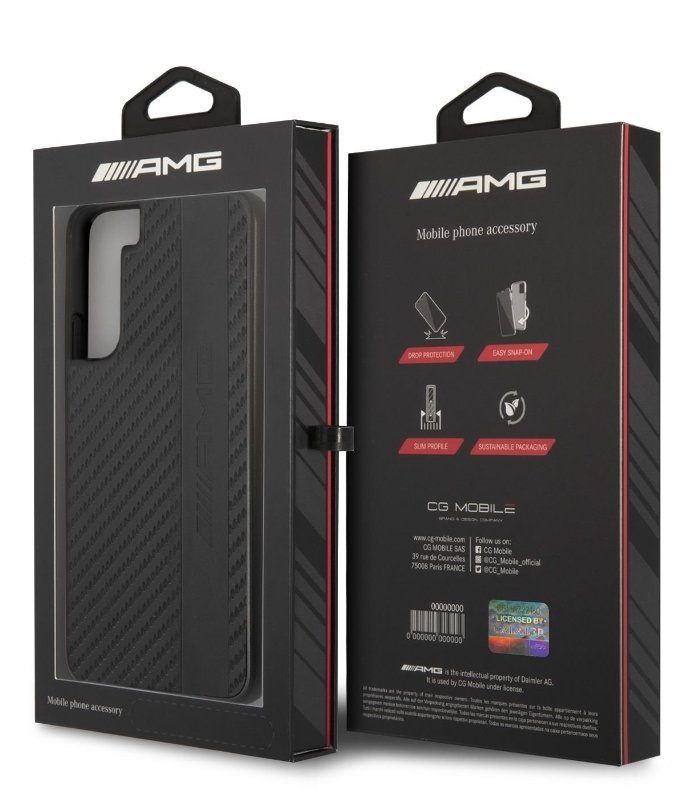 AMG prémiový kryt na telefon vyrobený z kombinace věrné imitace karbonového vlákna a pravé kůže.