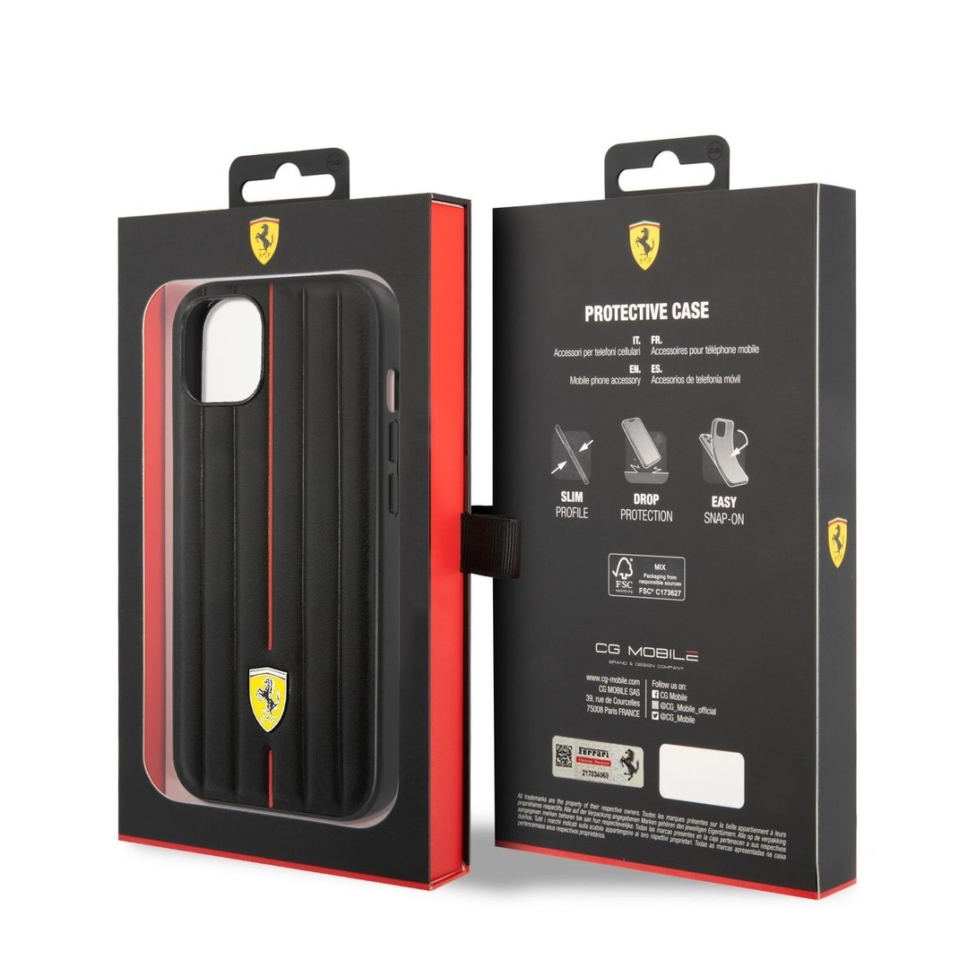 Ferrari Leather Embossed Stripes Zadní Kryt pro iPhone 14 Black