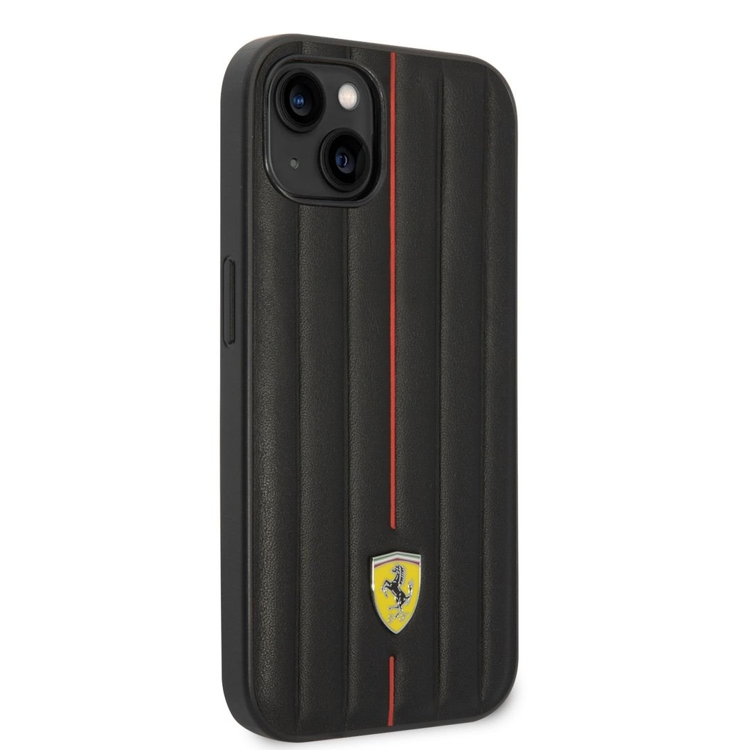 Ferrari Leather Embossed Stripes Zadní Kryt pro iPhone 14 Plus Black