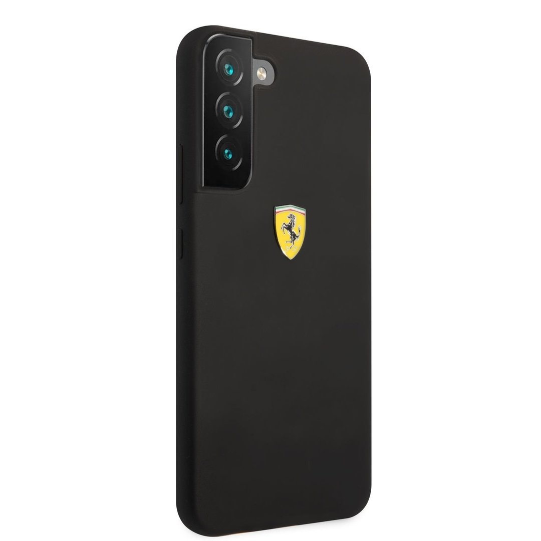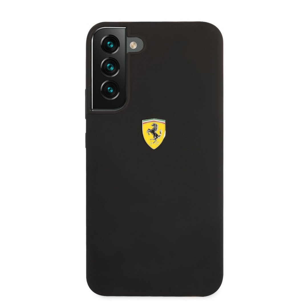 Ferrari Liquid Silicone Metal Logo Zadní Kryt pro Samsung Galaxy S22+ Black