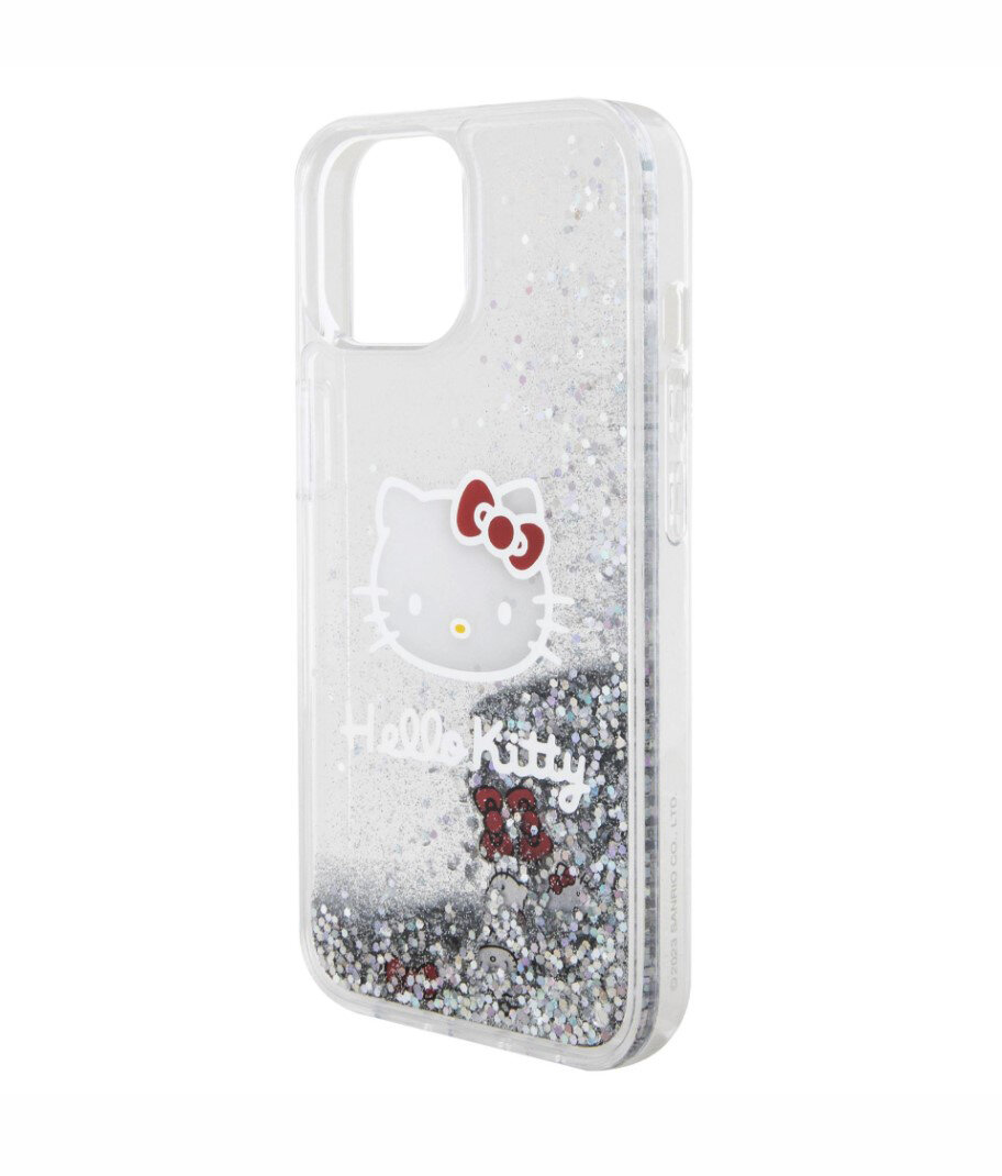 Hello Kitty Liquid Glitter Electroplating Head Logo Zadní Kryt pro iPhone 15, průhledná