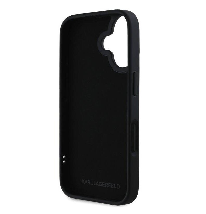 Karl Lagerfeld 3D Rubber Double Heads Zadní Kryt pro iPhone 16 Černá