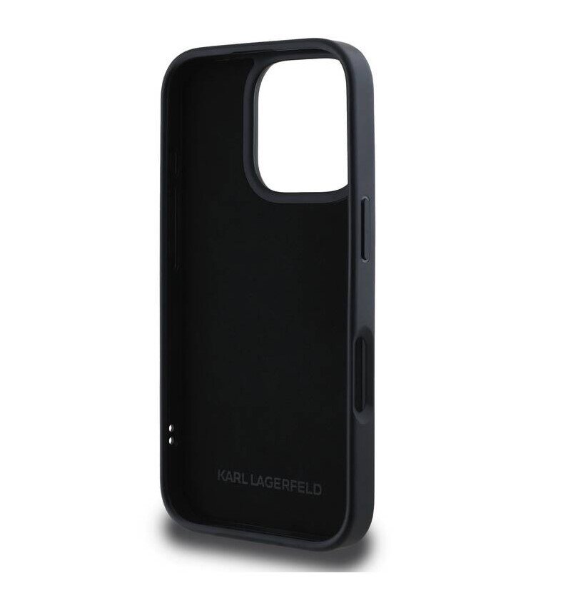 Karl Lagerfeld 3D Rubber Double Heads Zadní Kryt pro iPhone 16 Pro Černá