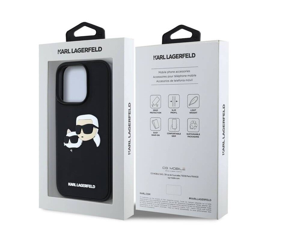 Originální kryt s plastickým motivem Karla a Choupette Zadní kryt Karl Lagerfeld 3D Rubber Double Heads pro iPhone spojuje odolný gumový materiál s výrazným 3D zpracováním hlav Karla Lagerfelda a jeho kočky Choupette. Kryt poskytuje spolehlivou ochranu proti poškrábání a nárazům a zároveň dodává zařízení osobitý a hravý vzhled.